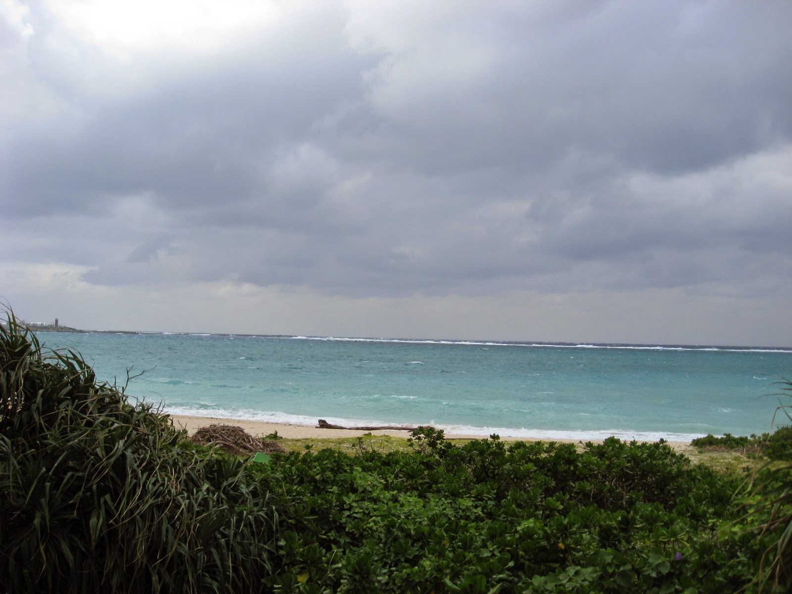 天気が良いととてもキレイに見えるビーチなのですが見ての通りの曇り空。